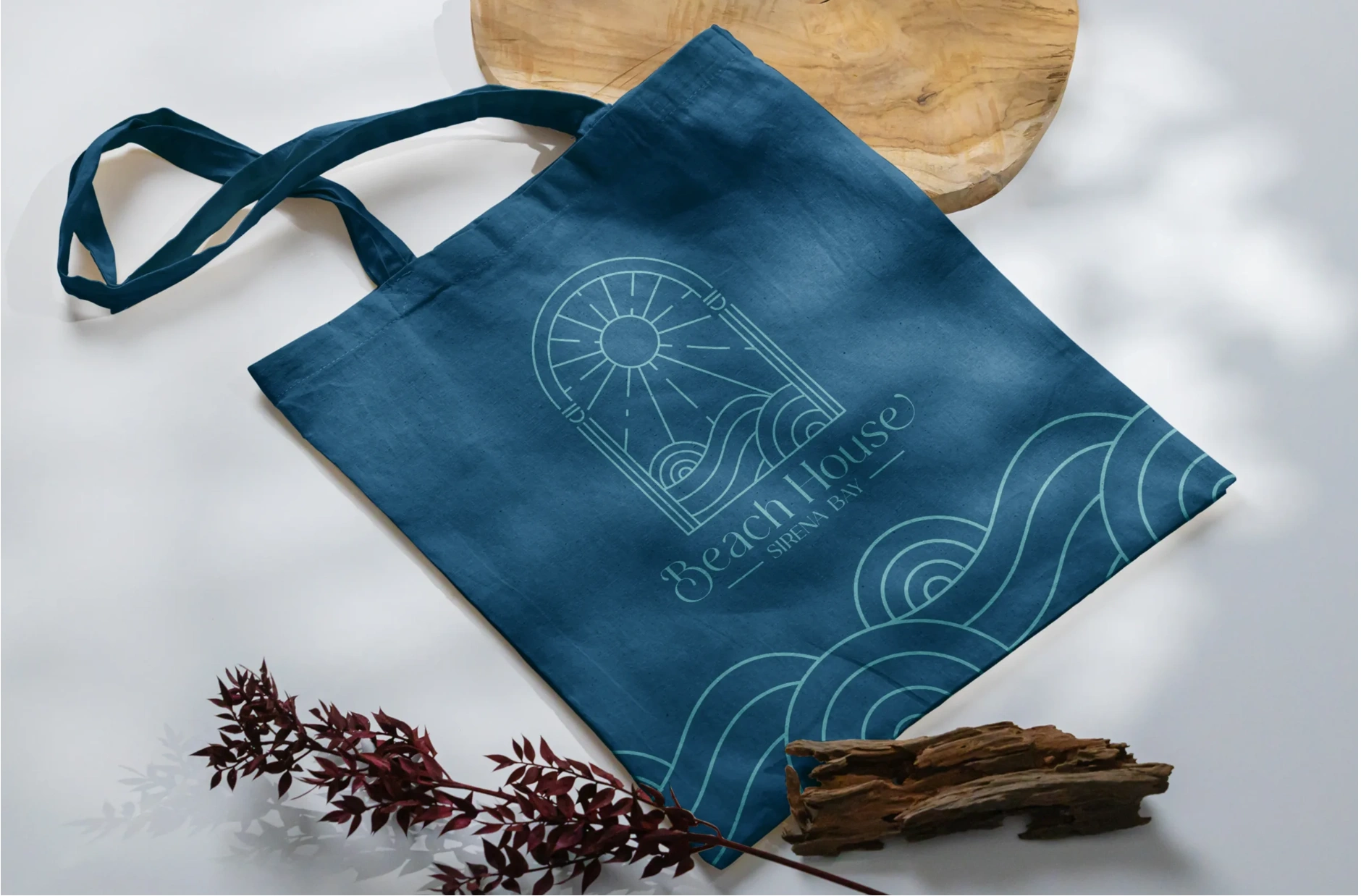 The project began with a soft and natural colour palette—sun-bleached neutrals, deep sea blues, and sandy textures—all inspired directly by the surroundings of the Cypriot coastline. The logo design is a clean, serif logotype that blends timeless elegance with bohemian charm, paired with hand-drawn details and organic shapes to bring warmth and personality.