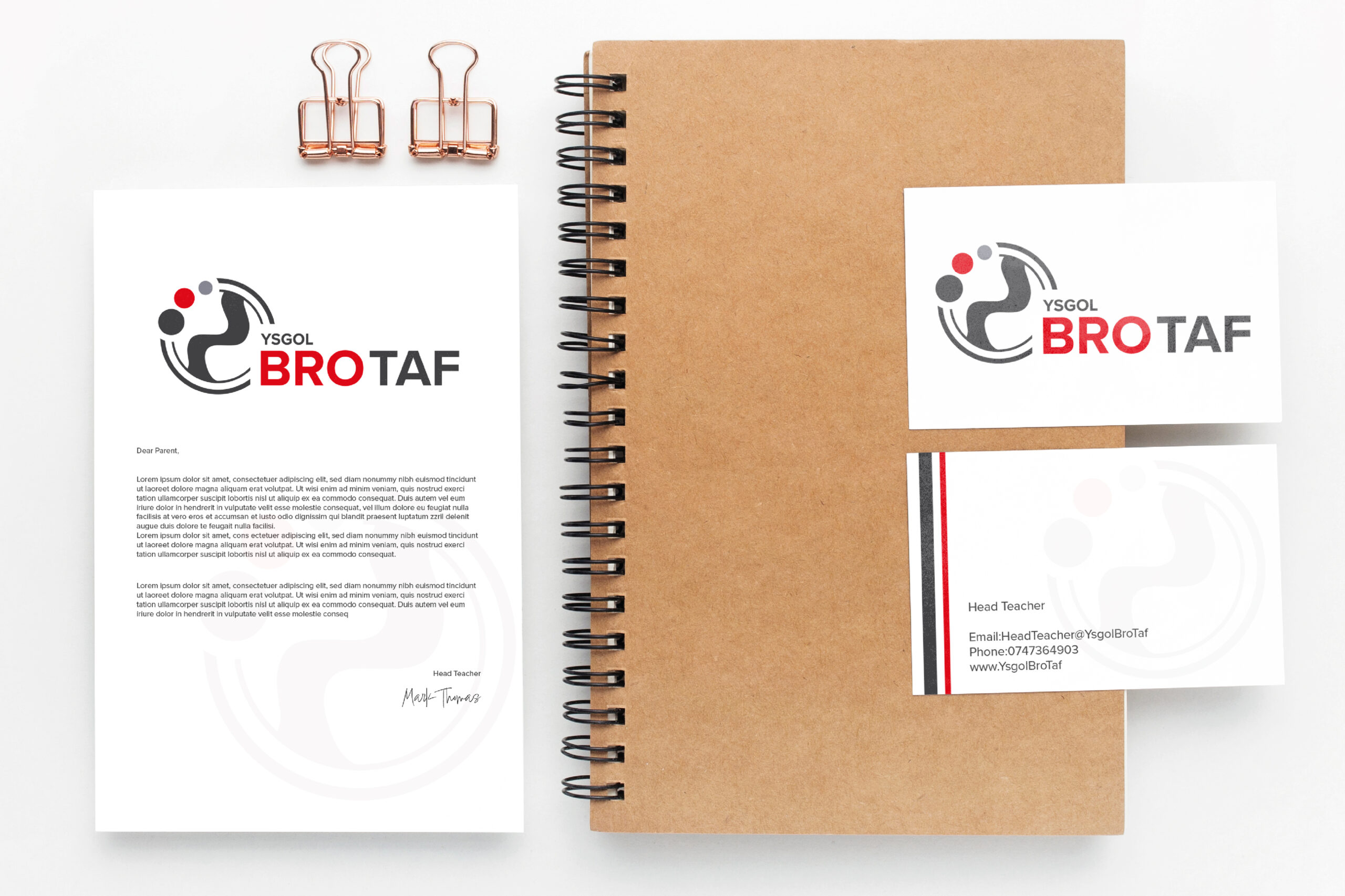 The brand identity for Ysgol Bro Taf was designed to reflect both unity and individuality across the school’s broad age range. At the heart of the logo are three distinct dots, each representing one of the key stages: Infants, secondary and Sixth Form. These dots are not just visual elements—they symbolise the journey of growth within the school, giving each group its own colour-coded identity to ensure that every student feels seen, valued, and empowered at every stage of their education.